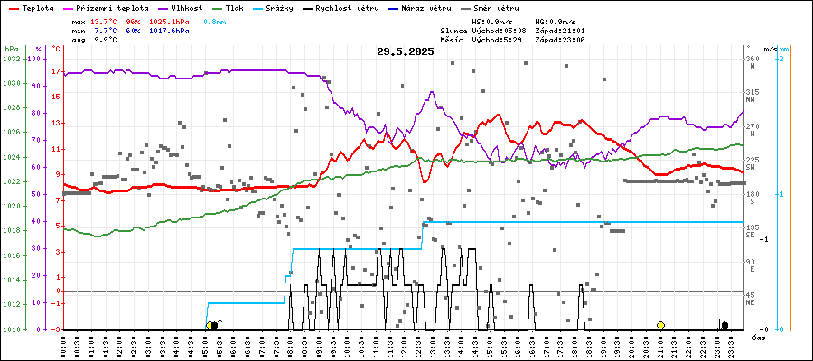 | Minimální teplota: | 7.7°C | v 01:30 |