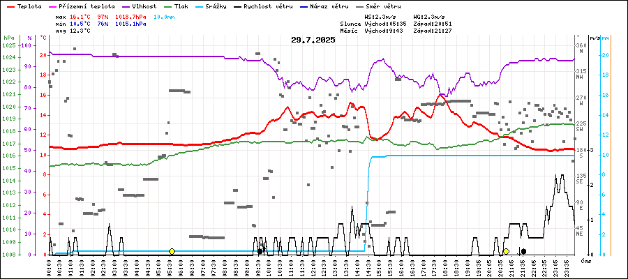 | Minimální teplota: | 10.5°C | v 22:45 |
