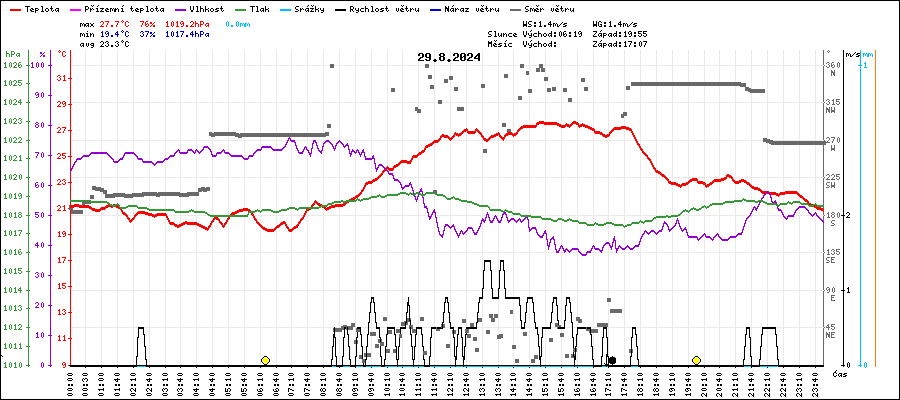 | Minimální teplota: | 19.4°C | v 06:25 |