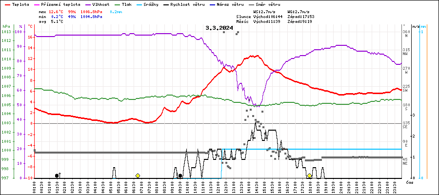 Průměrná teplota:6.1°C (tepl. v 7 + 14 + 2 x 21 h)