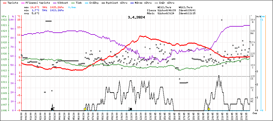 Průměrná teplota:5.9°C (tepl. v 8 + 15 + 2 x 22 h)