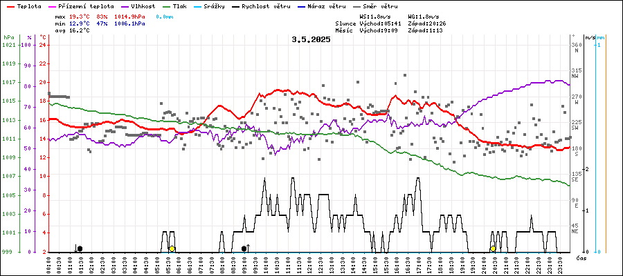 | Maximální teplota: | 19.3°C | v 10:30 |