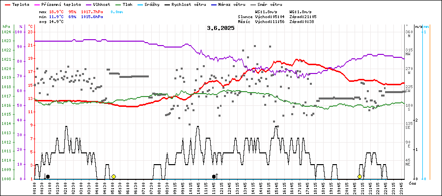 | Minimální teplota: | 11.9°C | v 05:55 |