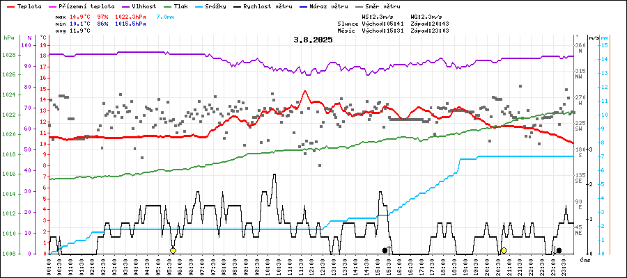 | Maximální teplota: | 14.9°C | v 11:40 |