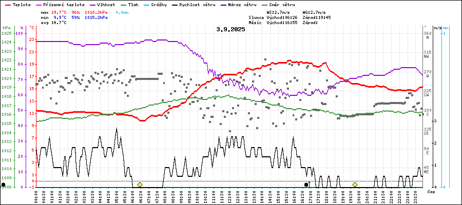 | Minimální teplota: | 9.9°C | v 06:25 |