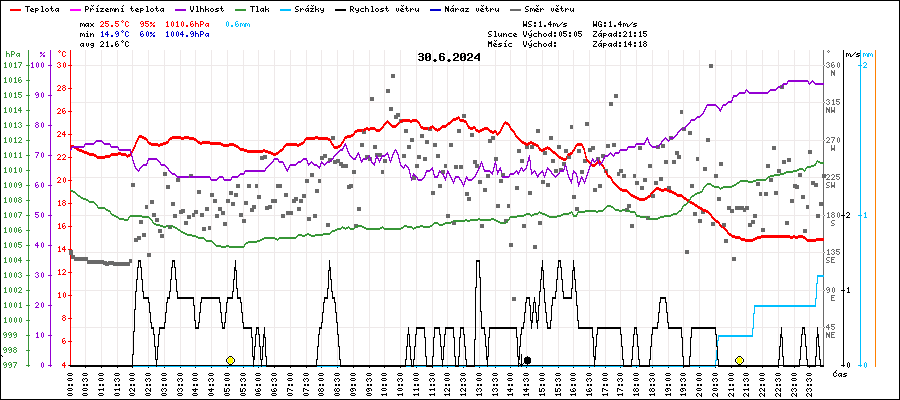 | Minimální teplota: | 14.9°C | v 21:30 |