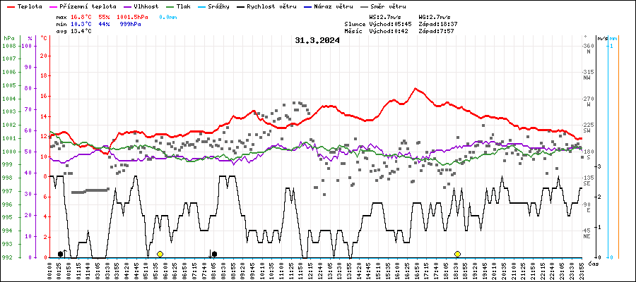 | Maximální teplota: | 16.8°C | v 16:45 |