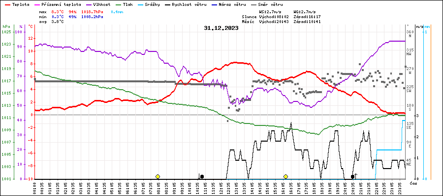 | Maximální teplota: | 8.3°C | v 12:55 |