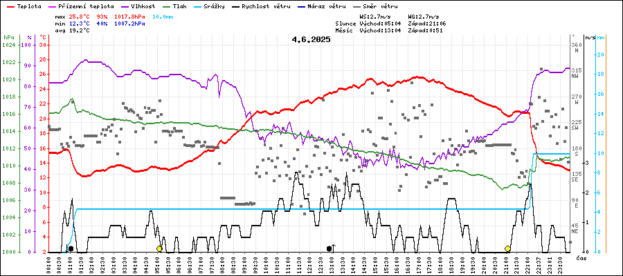 | Maximální teplota: | 25.8°C | v 16:55 |