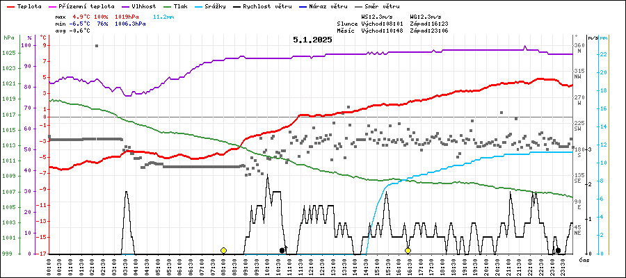 | Maximální teplota: | 4.9°C | v 22:20 |