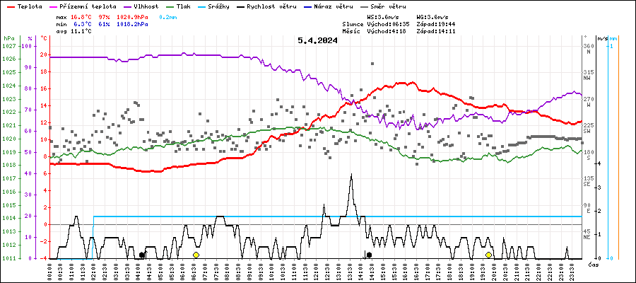 | Maximální teplota: | 16.8°C | v 16:20 |