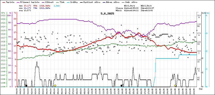 | Maximální teplota: | 17.1°C | v 13:35 |