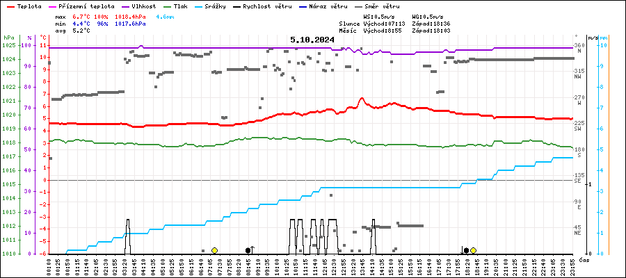| Minimální teplota: | 4.4°C | v 03:40 |