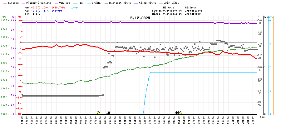 | Minimální teplota: | -2.9°C | v 23:45 |
