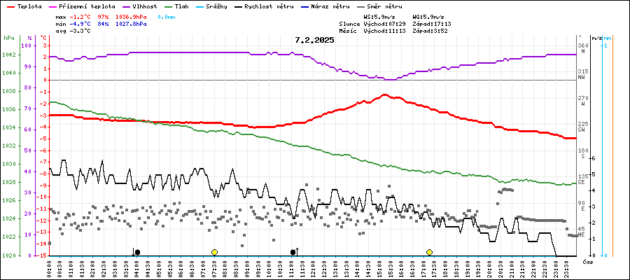 | Průměrná teplota: | -3.5°C | (tepl. v 7 + 14 + 2 x 21 h) |