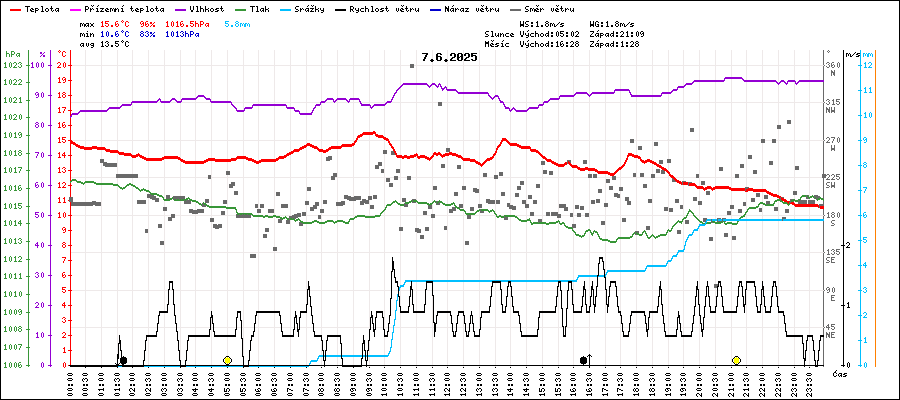 | Minimální teplota: | 10.6°C | v 23:50 |