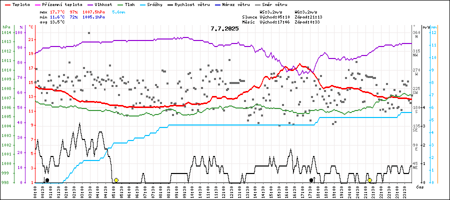 Průměrná teplota:13.4°C (tepl. v 8 + 15 + 2 x 22 h)