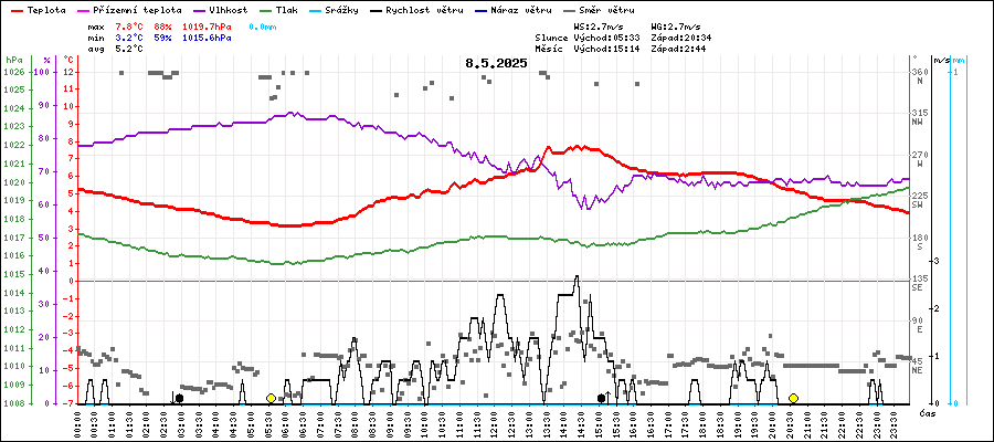 | Maximální teplota: | 7.8°C | v 14:20 |