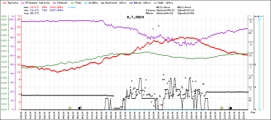 | Maximální teplota: | 20.4°C | v 16:45 |