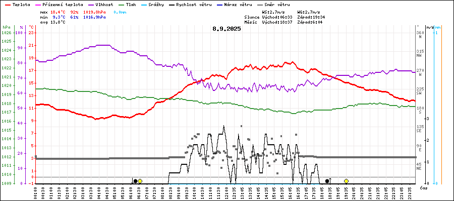 Průměrná teplota:14.4°C (tepl. v 8 + 15 + 2 x 22 h)