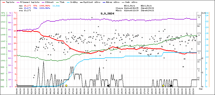 | Maximální teplota: | 18.2°C | v 00:00 |