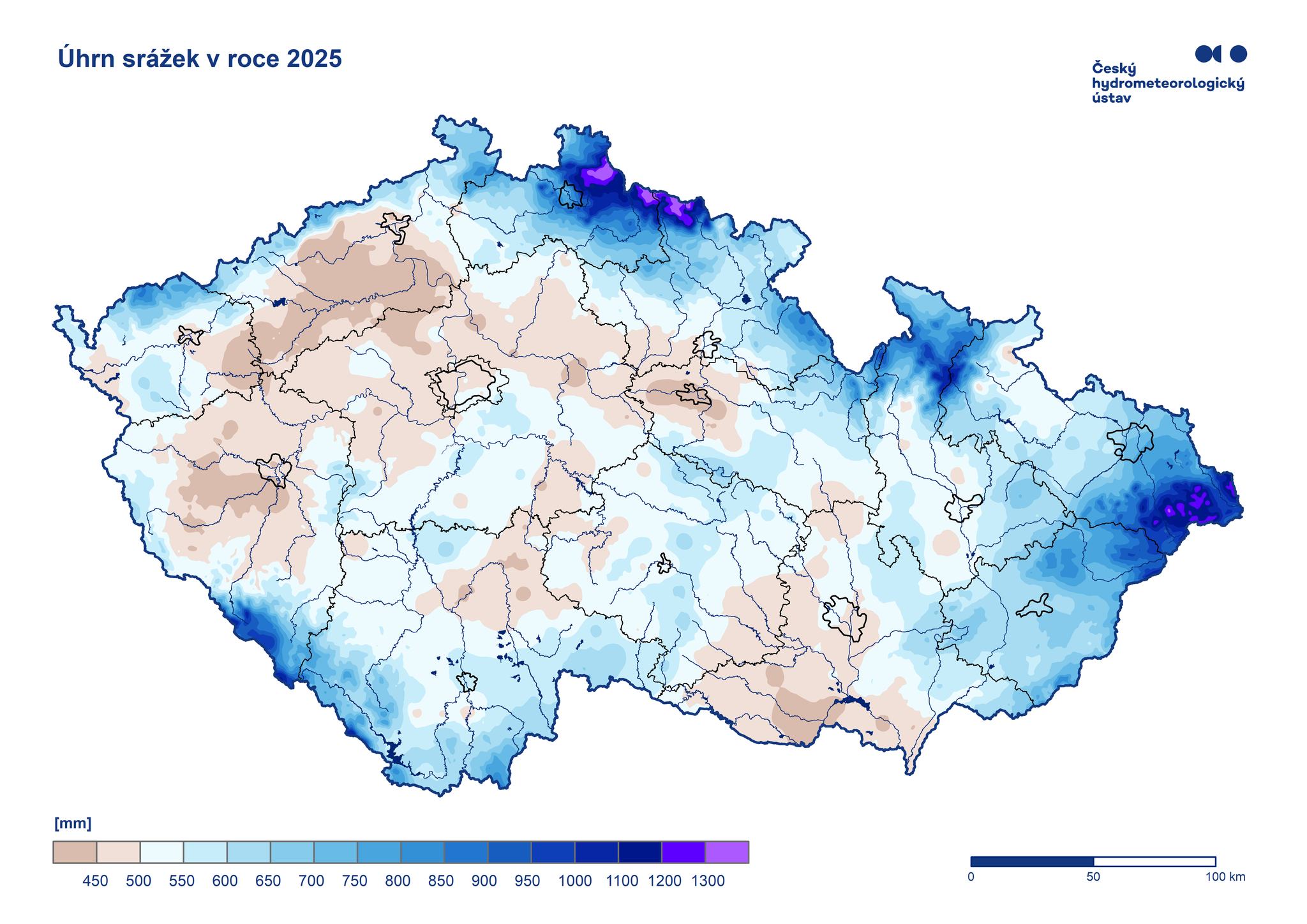 Roční úhrn srážek v České republice - mapy