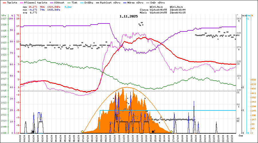 Přízemní minimum (5 cm):-1.2°C v 06:40