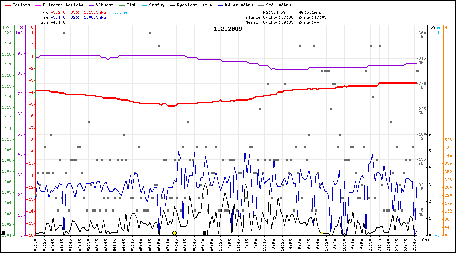 Průměrná teplota:-3.1°C (tepl. v 7 + 14 + 2 x 21 h)