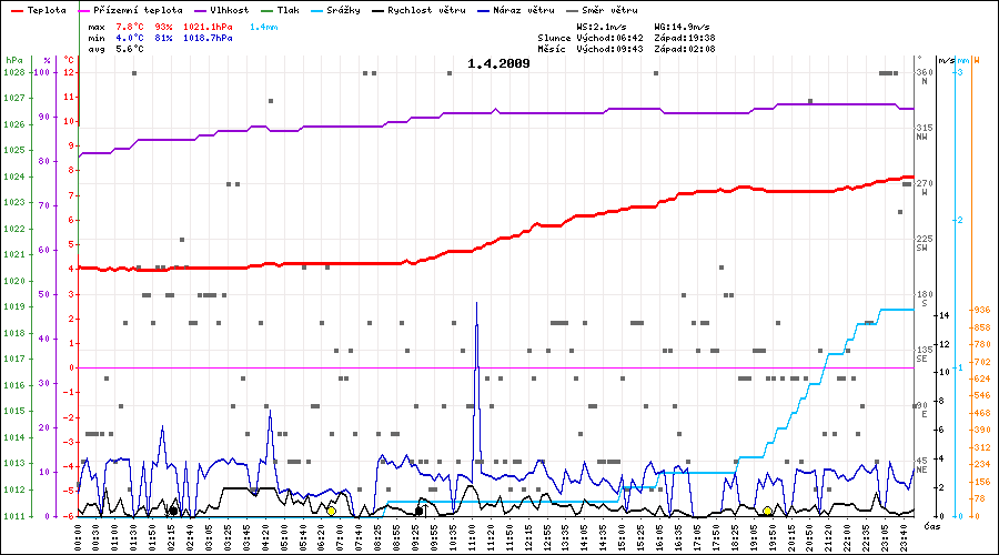 Průměrná teplota:4.6°C (tepl. v 8 + 15 + 2 x 22 h)