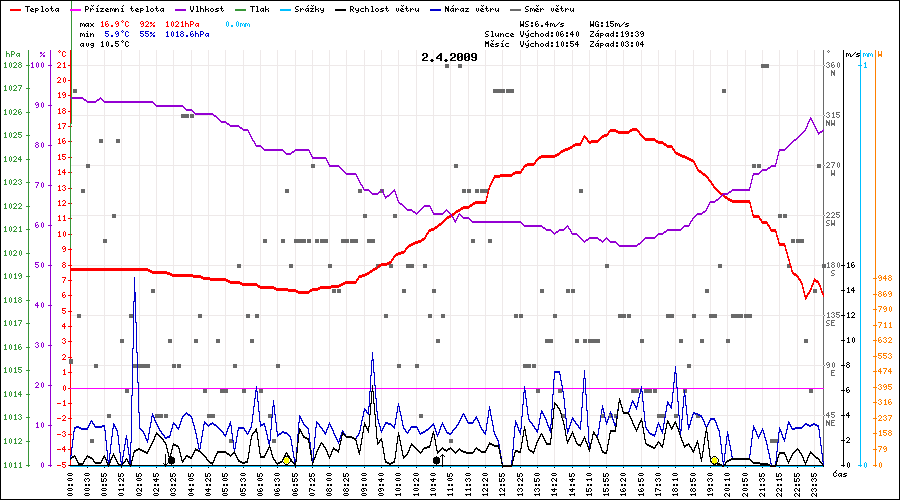 Průměrná teplota:8.3°C (tepl. v 8 + 15 + 2 x 22 h)