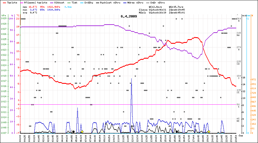 Průměrná teplota:7.0°C (tepl. v 8 + 15 + 2 x 22 h)
