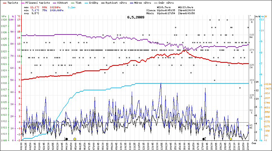 Průměrná teplota:7.5°C (tepl. v 8 + 15 + 2 x 22 h)