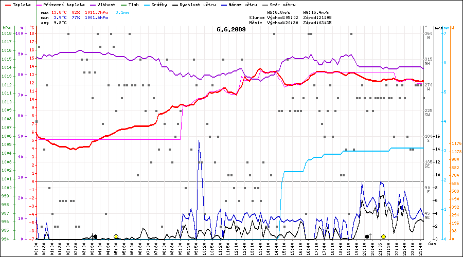 Průměrná teplota:9.8°C (průměr všech hodnot)