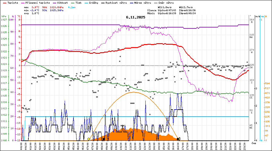 Přízemní minimum (5 cm):-6.3°C v 21:50