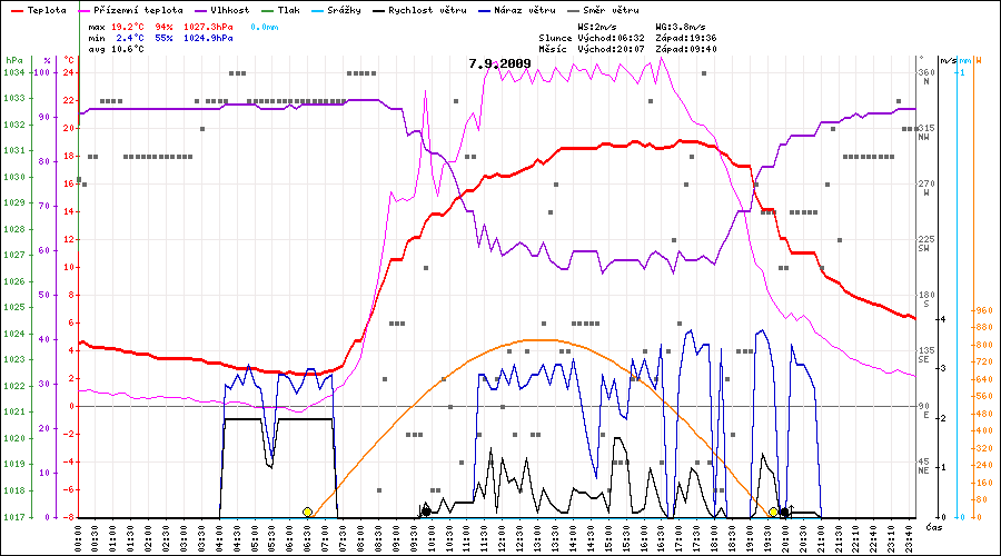 Přízemní minimum (5 cm):-0.4°C v 06:10