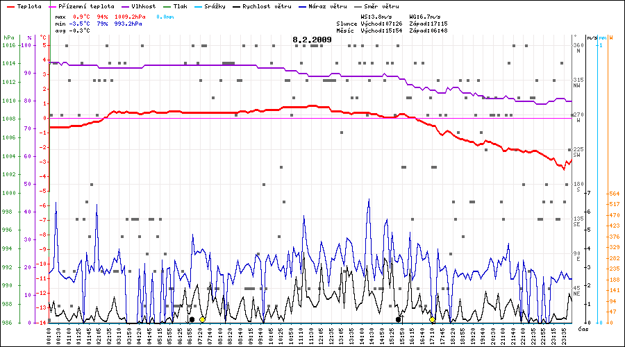 Průměrná teplota:-0.3°C (průměr všech hodnot)