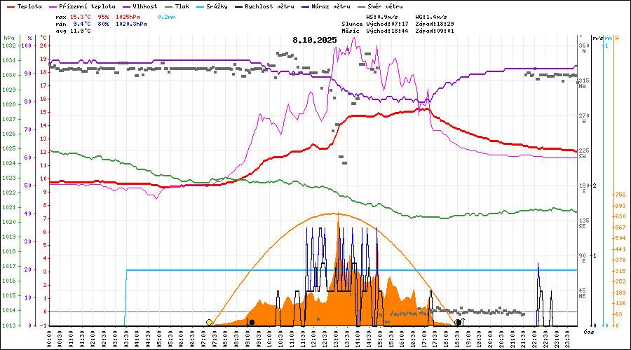 Průměrná teplota:9.3°C (tepl. v 8 + 15 + 2 x 22 h)