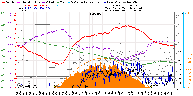 Průměrná teplota:15.4°C (tepl. v 8 + 15 + 2 x 22 h)