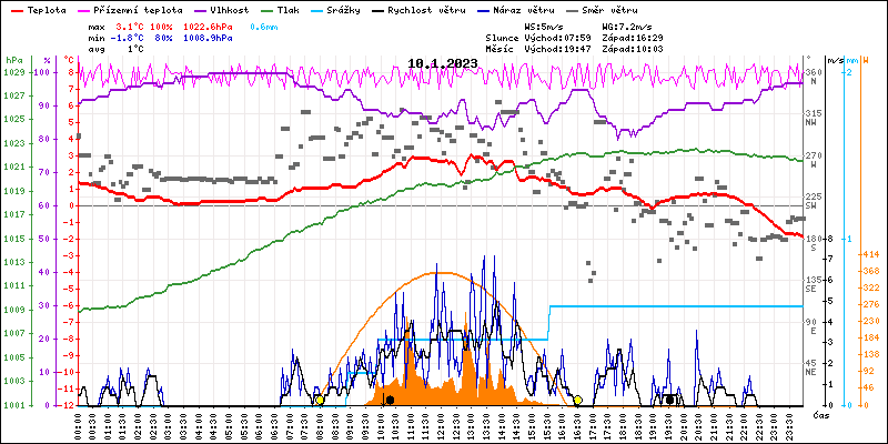 Meteostanice Volary, údaje z 10.01.2023