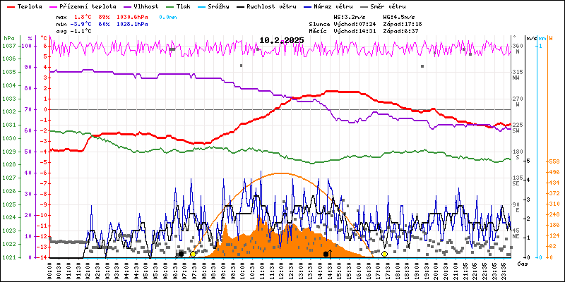 Meteostanice Volary, údaje z 10.02.2025