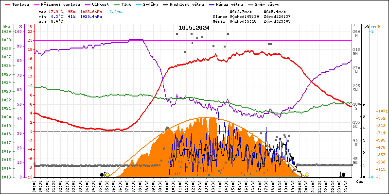 Meteostanice Volary, údaje z 10.05.2024