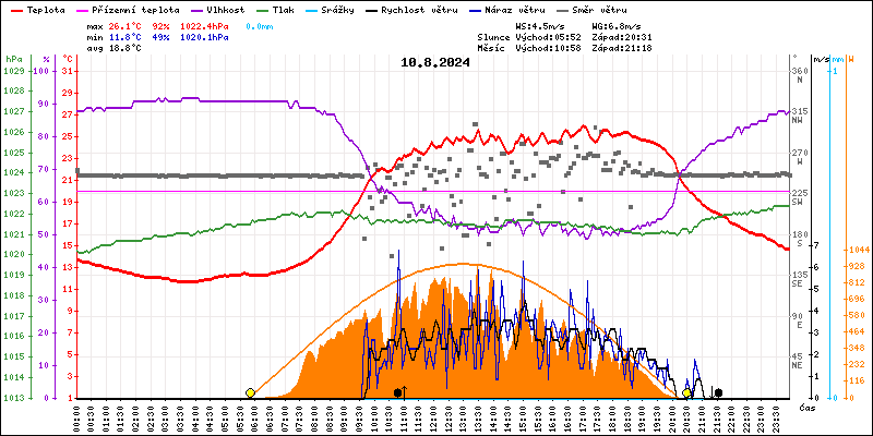 Meteostanice Volary, údaje z 10.08.2024