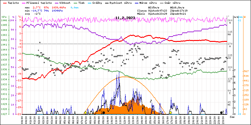 Meteostanice Volary, údaje z 11.02.2023