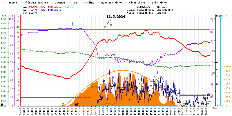 Průměrná teplota:11.7°C (tepl. v 8 + 15 + 2 x 22 h)