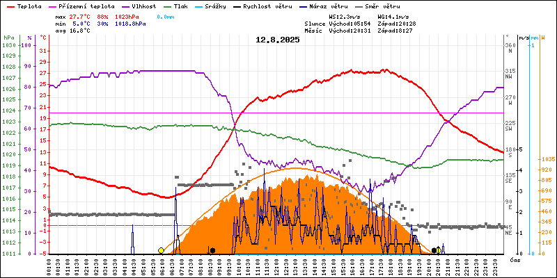 Meteostanice Volary, údaje z 12.08.2025