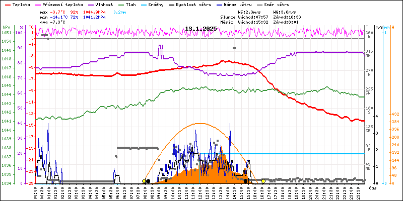 Meteostanice Volary, údaje z 13.01.2025