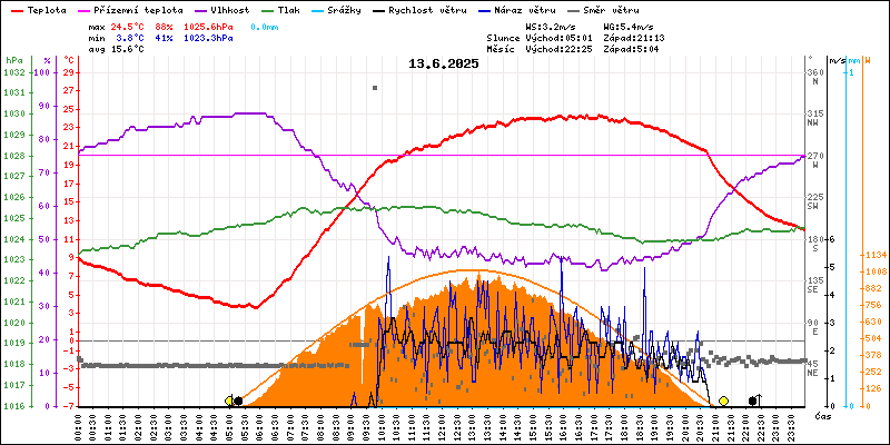 Průměrná teplota:16.6°C (tepl. v 8 + 15 + 2 x 22 h)