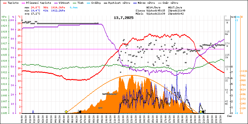 Meteostanice Volary, údaje z 13.07.2025