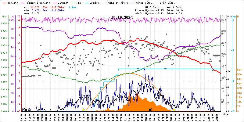 Průměrná teplota:7.5°C (tepl. v 8 + 15 + 2 x 22 h)