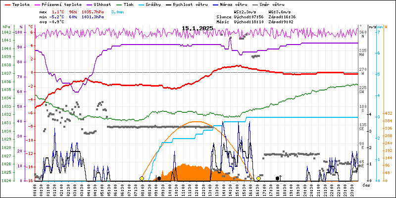 Meteostanice Volary, údaje z 15.01.2025